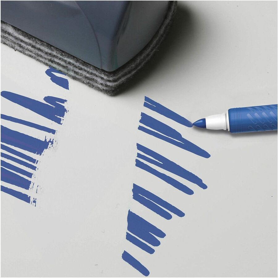 Perfect for use on dry erase boards, glass and most non-porous surfaces. It features a molded grip zone for added control and it easily erase with a dry cloth, tissue or felt eraser. Low-odor, ink. Marker Ink Type: Dry Erase; Marker Tip Type: Bullet;