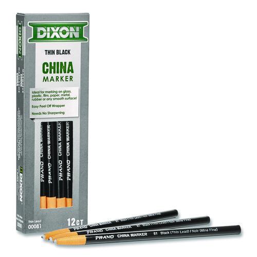 Dixon® China Marker, Black, Thin Lead, 12/Pack