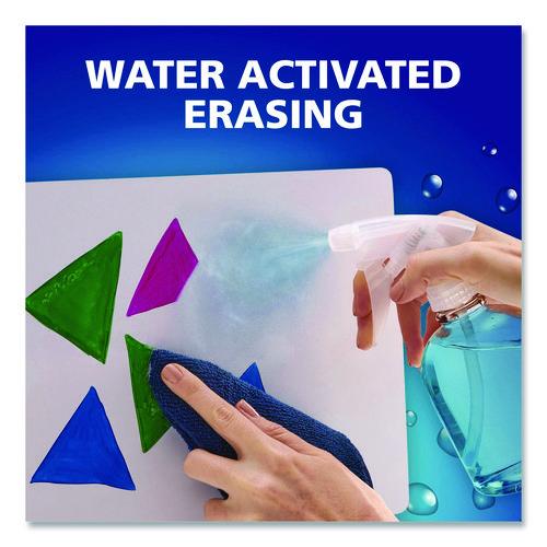 - Wet erase markers with water-activated erasing technology.