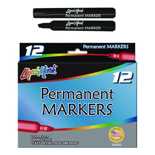 The Liqui-Mark is a quick-drying permanent black marker that won't fade. It will permanently mark most surfaces in your home, school or office, and is also great for industrial use, but don't use it as a laundry marker! Marker Ink Type: Permanent; Ma