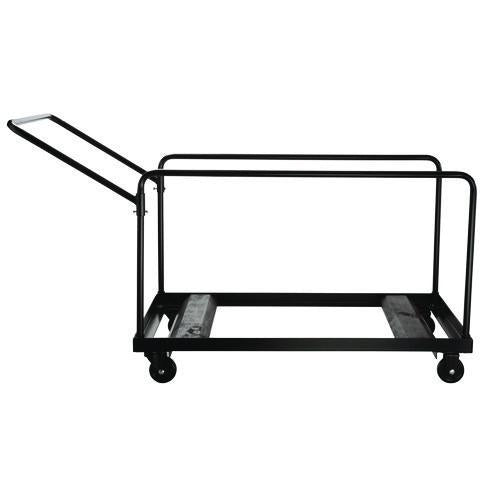 This dolly easily stores and transports round folding tables, whether they are plastic or laminated wood. Stack up to 10 vertically upright roundtables (48" to 60" diameter) on this sturdy, tubular steel dolly. The scratch-resistant powder-coated pai- Transportation and vertical storage of 48" and 60" round plastic or laminate tables.