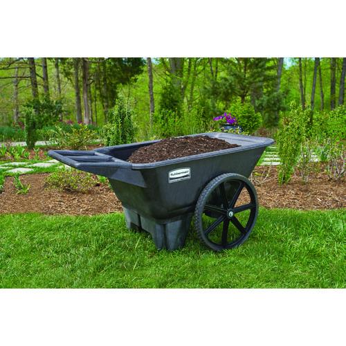 The Rubbermaid Commercial Big Wheel Cart is a professional-grade wheelbarrow constructed of high-density polyethylene with seamless design. This wheel barrow has a smooth, one-piece tub that is easy to dump and clean. 2 large pneumatic wheels make th