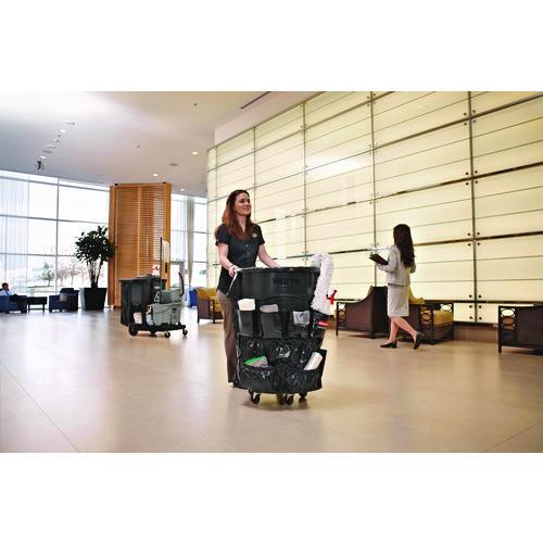 The Rubbermaid Commercial BRUTE Trash Can Caddy Bag fits 32- or 44-gallon BRUTE trash cans. Large elastic packets are designed to hold cans, bottles, tools, cleaning utensils, and other accessories. Crafted of durable vinyl, this trash can caddy is e