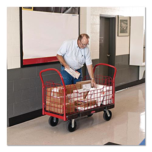 Platform truck is ideal for moving small packages and materials. Heavy-duty wire side panels may be individually removed to accommodate bulky items. Side-panel cut-outs simplify loading and delivery. Duramold precision-engineered resin-metal compo- Perfect for moving small packages and materials.
