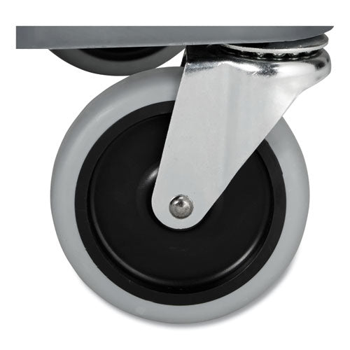 The Rubbermaid Commercial Xtra Instrument and Utility Cart is a rolling utility cart with two shelves, a lockable cabinet and a sliding drawer. Constructed from durable plastic, the wheel cart has sturdy swivel casters for smooth movement, and raised