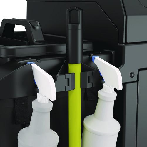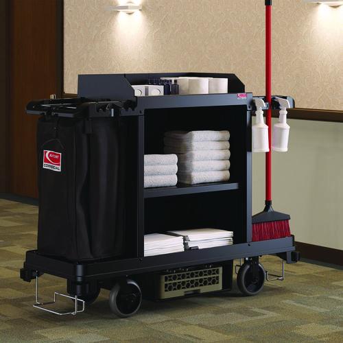 The Suncast Commercial® Standard Housekeeping Cart is a durable and sleek cart with a variety of storage and organization options. The impact absorbing bumpers are designed to reduce costly wall damage throughout the hotels or other businesses. The