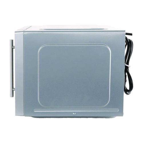 - Six one-touch, pre-set cooking settings: baked potato, popcorn, pizza, beverage, frozen dinner and reheat.