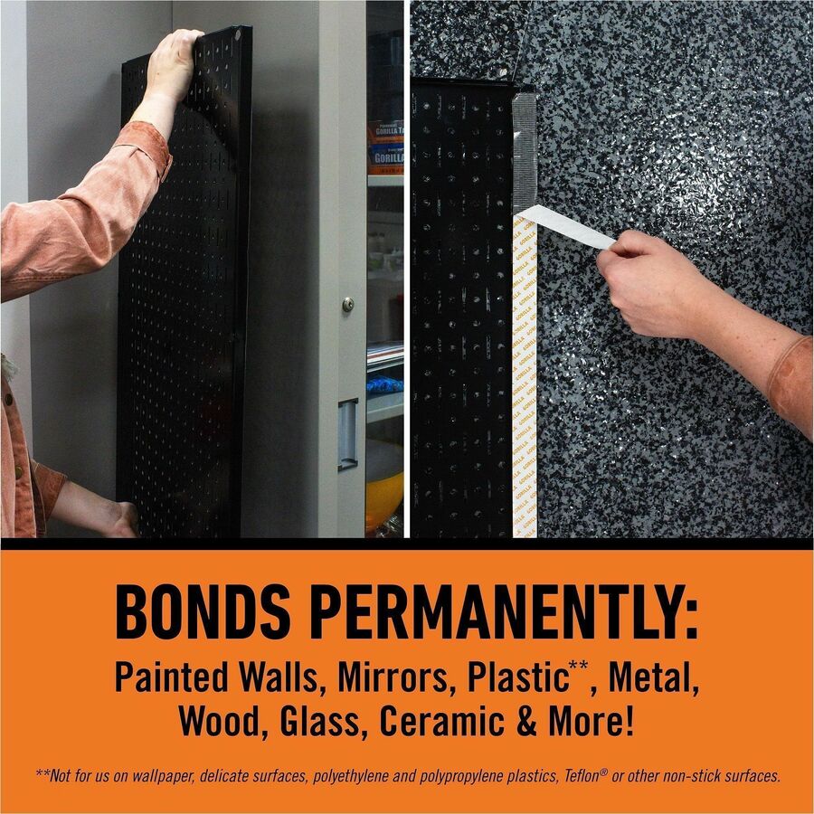 Gorilla® Max Strength Mounting Tape, our strongest mounting tape, includes a mesh reinforced layer making it 1.5x stronger than our Heavy Duty Mounting Tape. It mounts in an instant for a permanent bond that holds 3 pounds per 4 inches of tape! Gori