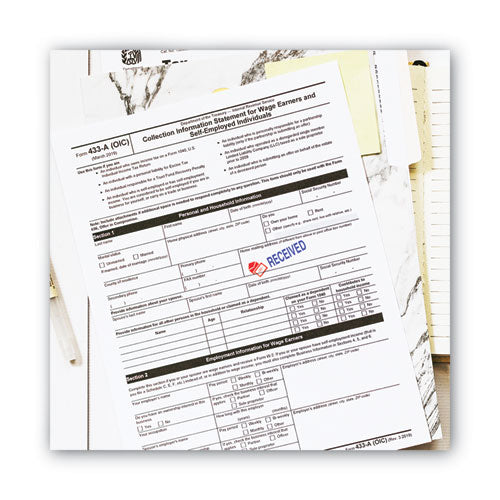 - Offers a quick and efficient way to mark your documents with a message in bright ink. Impression size is 1.63 x 0.5".