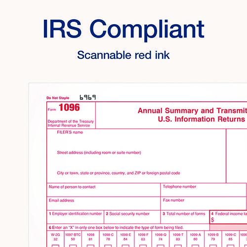 - Micro-perforated, 2-part carbonless sets with the scannable red ink required by the IRS.