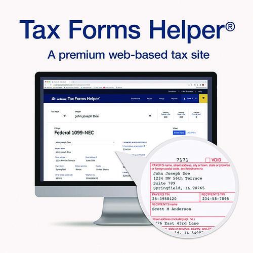 - 1099-NEC sets for laser/inkjet printers, 1096 summaries, security envelopes and access to Tax Forms Helper®.