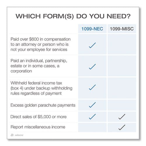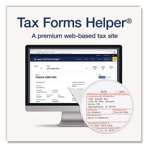 - 1099-NEC sets for laser/inkjet printers, 1096 summaries and access to Tax Forms Helper®.
