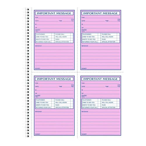 Image of Adams® Important Message Book, Two-Part Carbonless, 4 Forms/Sheet, 200 Forms Total
