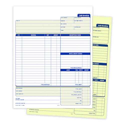 Ideal for scenarios where balances are payable upon the completion of related services, Adams® Multipart Job Invoice Forms feature compartmentalized formatting to accommodate precise details about the service provided: Description of Work, Materials