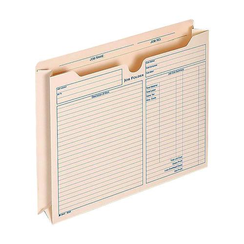 Organize work orders, invoices and other project information with these expanding job folders. Three-sided closures keep paper secure inside, while the thumb-cut fronts offer easy access to the documents stored inside. Each jacket features a preprint