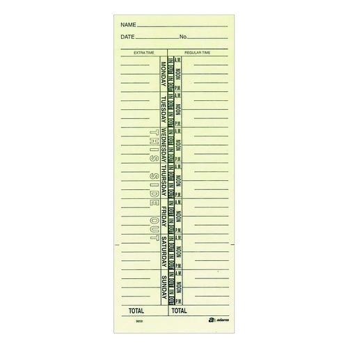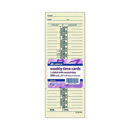 Maintain accurate time records. Standard size to work in a wide variety of time clock systems. Use time cards to track employee arrival time, breaks, lunches, overtime and departure times. Sturdy manila card stock. Size: 3.38" x 9"; Time Period: Week