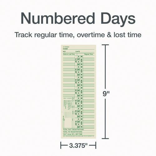 Maintain accurate time records. Standard size to work in a wide variety of time clock systems. Use time cards to track employee arrival time, breaks, lunches, overtime and departure times. Sturdy manila card stock. Size: 3.38" x 9"; Time Period: Bi-W