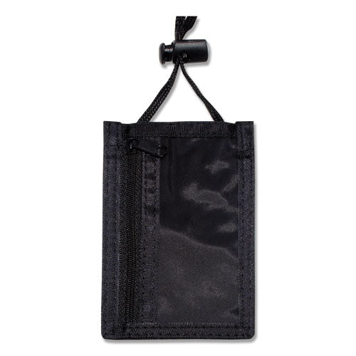 Badge ID holders feature a nylon convention pouch to display identification cards as well as offer additional storage. Back features two pockets: one open and one zippered to store credit cards or other items. Adjustable 44" cord. Orientation: Vertic