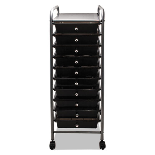 This rolling cart is a simple storage solution for a home office or workspace. The cart holds slide-out drawers for organizing paperwork, office supplies, small tools, and other items. Also features 360-degree rotating wheels for easy mobility with t