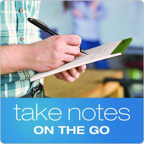Micro-perforated pages provide clean, easy sheet removal. No margin for more usable writing space. Paper made from post-consumer recycled fiber. A handy writing pad. Pocket-Sized Indicator: Y; Pad-Binding Type: Taped; Pad-Binding Edge: Top; Number of