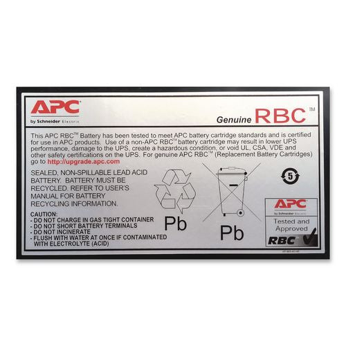 SKU: SEURBC7 Manufacturer: AMERICAN POWER CONVERSION Mfr. Part Number: RBC7 Brand Name: APC® Alternate Part Numbers: SEURBC7, SEU-RBC7, RBC7, 00852857000074 (GTIN) Country of Origin: CN (CHINA) TAA Compliant: No UNSPSC Code: 0026111710 Unit of Measure: EA (1 Each) UPS Shippable: Yes Air Shippable: Yes Item Dimensions: 11.66 in. x 10.75 in. x 10.61 in. Weight: 27.9600 lb. Expiration Date: No Warranty Information: Manufacturer's limited one-year warranty. Environmental Properties
