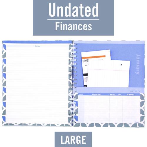 • Monthly pocket format with space for statements, bills and receipts.