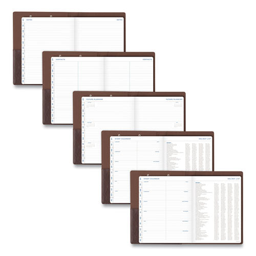 Distressed leather-like covers with stitched edges for a polished look that's perfect for modern professionals. A clipboard on the front cover is useful for securing loose papers and notes while on the go. The included monthly planner's 13 month date- Distressed leather-like covers with stitched edges for a polished look that's perfect for today's modern professionals.