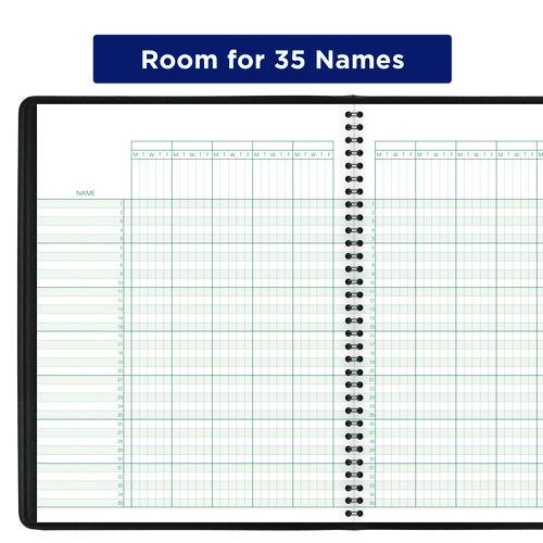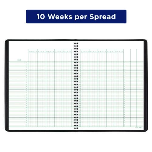 - One week per two-page spread includes space to track up to 35 students over 10 weeks.