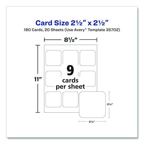 Make sure your cards stand out with Avery® 35702 square cards with rounded corners. This pack of first-rate customizable business cards is made from quality cardstock with a weight of 93 lbs/254 gsm, and offers an impressively substantial look and f
