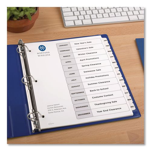 Sometimes finding information at a moment's notice seems like finding a needle in a haystack. These Ready Index® Table of Contents Dividers help you stay organized so you can locate important documents quickly and easily. They feature preprinted alp