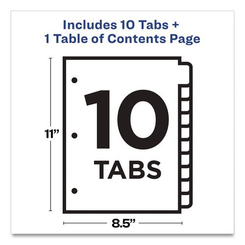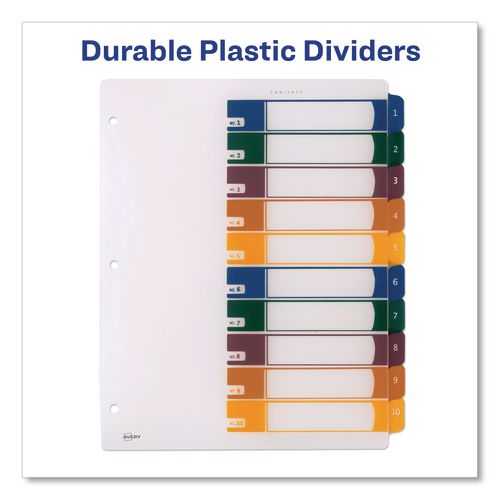 - These durable plastic Table of Contents dividers with multicolor tabs offer a modern look.