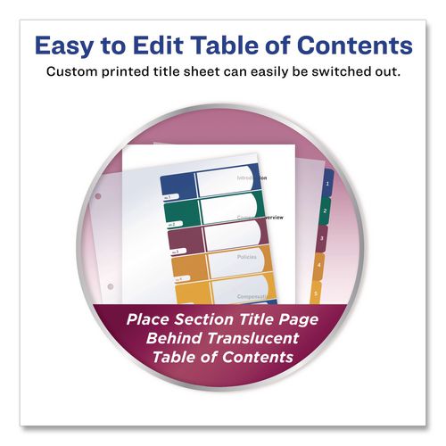 A well-organized presentation can really drive your message home. These Ready Index® Translucent Table of Contents Dividers will help you create an organized, attention-grabbing presentation in just minutes. They feature preprinted numbered multicol