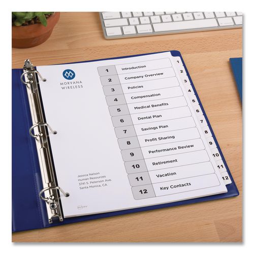 Sometimes finding information at a moment's notice seems like finding a needle in a haystack. These Ready Index® Table of Contents Dividers help you stay organized so you can locate important documents quickly and easily. They feature preprinted alp