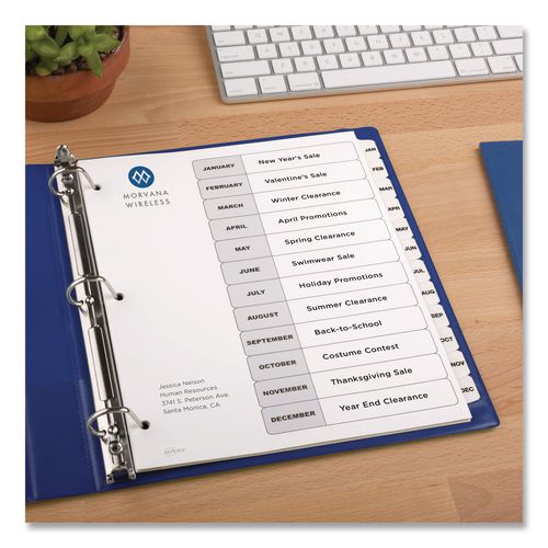 Sometimes finding information at a moment's notice seems like finding a needle in a haystack. These Ready Index® Table of Contents Dividers help you stay organized so you can locate important documents quickly and easily. They feature preprinted alp