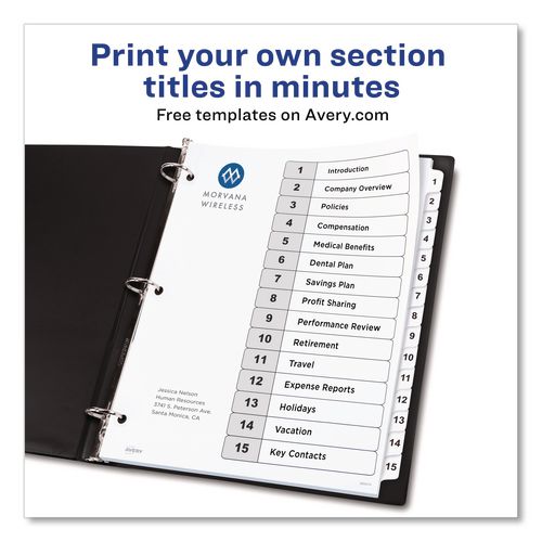 Sometimes finding information at a moment's notice seems like finding a needle in a haystack. These Ready Index® Table of Contents Dividers help you stay organized so you can locate important documents quickly and easily. They feature preprinted alp