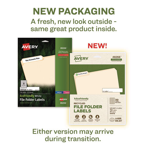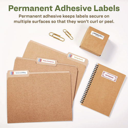 Get labels that work not only for you, but for the environment with these ecofriendly file folder labels. The labels and packaging are made of 100% recycled material and are processed chlorine free. When you're done, the labels and box are also recyc