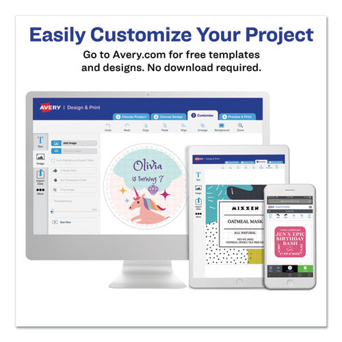 Have something important to say? Customize your white labels with attention-getting images or make your most important messages stand out with high-visibility color labels. Ideal for announcements, priority messages, addressing, color-coding, identif