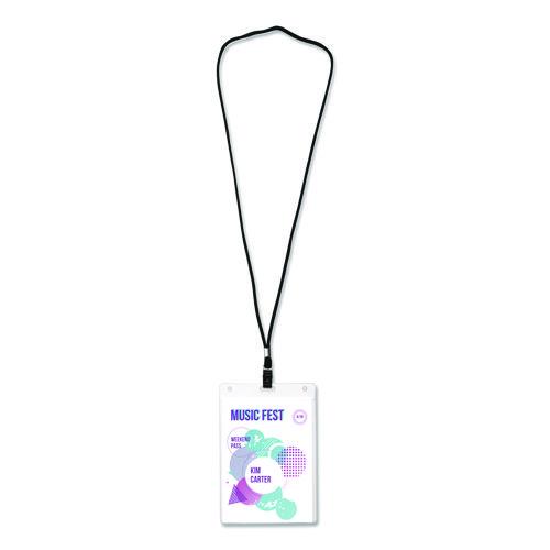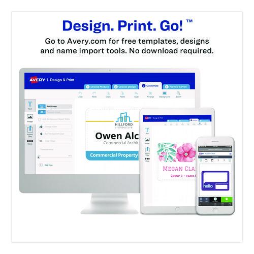 These badges feature a durable, easy-to-load, open top, pocket-style design. White micro-perforated name badge inserts are printable on both sides and separate cleanly leaving smooth edges. Create badges with text and colorful graphics using free des