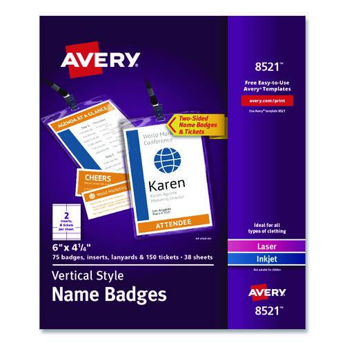 - White micro-perforated name badge inserts are printable on both sides and separate cleanly leaving smooth edges.