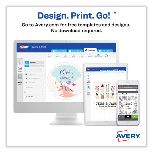 Make sure your handmade gifts and products stand out with Avery labels that offers the professional finishing touch you need. The print-to-the-edge capability allows you to create bright, eye-catching full-bleed labels with sharp text and crisp image