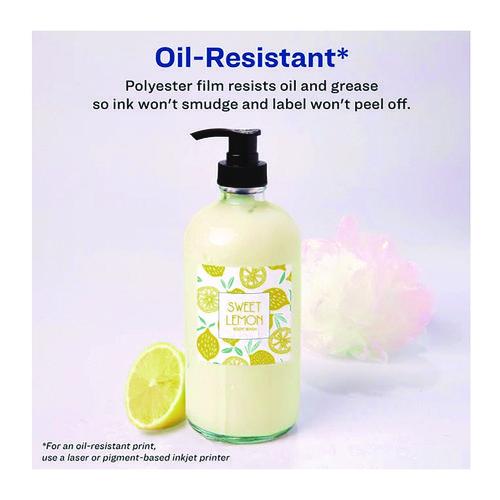 - Avery waterproof oil-resistant film labels are made with polyester film that won't absorb water, oils and grease like standard paper labels