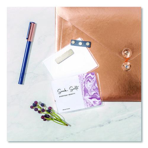 Strong, heavy-duty magnet holds name badge in place. Safe for any style of clothing without damaging material or flipping over. Features an easy-to-load pocket style design. Durable plastic is reusable and displays names clearly. Micro-perforated ins