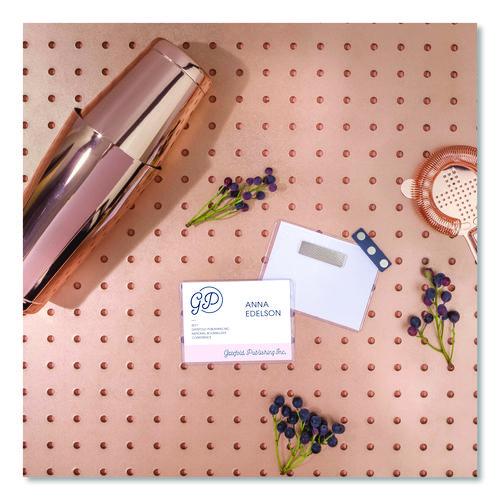 Strong, heavy-duty magnet holds name badge in place. Safe for any style of clothing without damaging material or flipping over. Features an easy-to-load pocket style design. Durable plastic is reusable and displays names clearly. Micro-perforated ins