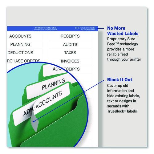 This is the mark of a true professional. Use these file folder labels with TrueBlock® technology to give ordinary folders a clean, organized look that's easy to identify. These innovative labels are designed to completely cover everything underneath