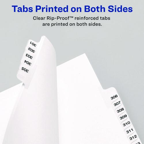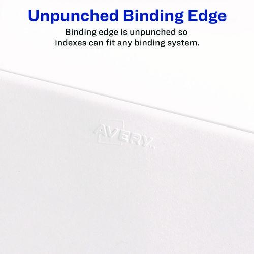 Rip Proof reinforced, dual-sided, laminated tabs make it easy to organize your information. The binding edge is unpunched, so these dividers can fit practically any binding system. Ideal for briefs, legal exhibits, mortgage documentation files and mo