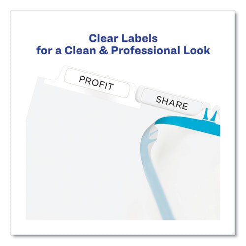 Whether you're organizing a single project or creating multiple sets, Index Maker® clear labels virtually disappear on divider tabs to give you a professional printed-on look. The Easy Apply label strip lets you label all tabs at once. Easy to custo
