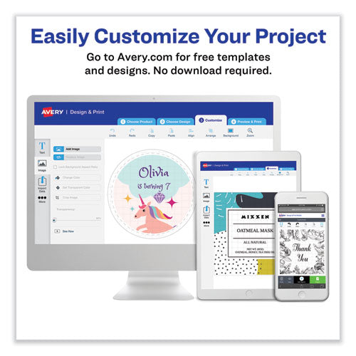 SKU: AVE6450 Manufacturer: AVERY PRODUCTS CORPORATION Mfr. Part Number: 06450 Brand Name: Avery® Alternate Part Numbers: AVE6450, AVE-6450, 06450, 50072782064506 (GTIN), 00072782064501 (GTIN) Country of Origin: MX (MEXICO) TAA Compliant: Yes UNSPSC Code: 0055121606 Unit of Measure: PK (Package of 945) UPS Shippable: Yes Air Shippable: Yes Item Dimensions: 12.09 in. x 9.44 in. x 0.13 in. Weight: 0.4400 lb. Expiration Date: No Environmental Properties