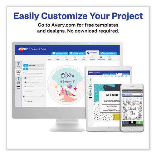 SKU: AVE6460 Manufacturer: AVERY PRODUCTS CORPORATION Mfr. Part Number: 06460 Brand Name: Avery® Alternate Part Numbers: AVE6460, AVE-6460, 06460, 50072782064605 (GTIN), 00072782064600 (GTIN) Country of Origin: MX (MEXICO) TAA Compliant: Yes UNSPSC Code: 0055121606 Unit of Measure: PK (Package of 750) UPS Shippable: Yes Air Shippable: Yes Item Dimensions: 12.00 in. x 9.30 in. x 0.50 in. Weight: 0.6800 lb. Expiration Date: No Environmental Properties