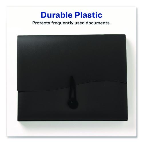 Easily identify and organize your ongoing projects with this innovative expanding file. When open, the five separate sections slide apart for quick access and visibility. To save space, the file easily collapses, and an elastic closure keeps document