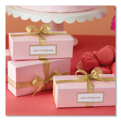 Remarkably reflective and elegant, Avery matte white rectangle labels with metallic gold borders bring a strikingly radiant shine to any event or project. Each rectangle label is pre-printed with a brilliant gold foil-like border that is guaranteed t